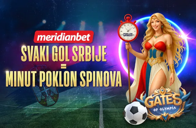 Meridian, takođe veruje u naše „Orlove“ i, u to ime, donosispecijalnu promociju za sve ljubitelje klađenja, ali i slotova– SVAKI GOL SRBIJE DONOSI VAM MINUT BESPLATNIH SPINOVA! Sve što treba da uradite, jesteda odigrate tiket koji sadrži utakmicu Engleska – Srbija.