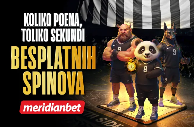 Sportska kladionica Meridian i ovog puta donosi dodatno uzbuđenje – odigraj tiket koji sadrži meč Partizan – Bajern Minhen i svaki poen crno-belih pretvara se u sekundu besplatnih spinova.