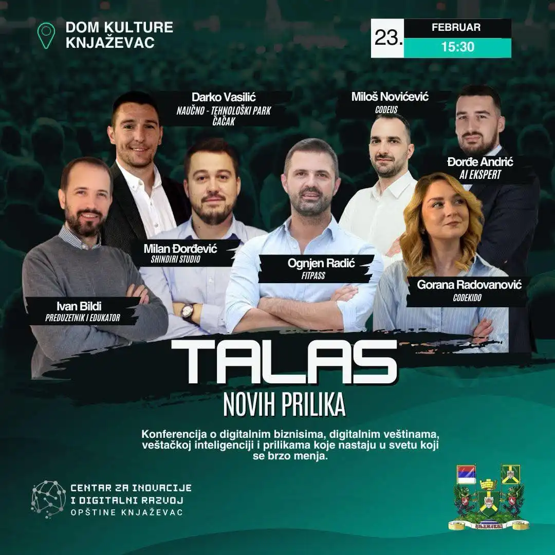 U Knjaževac će u ponedeljak, 23. februara, biti održana konferencija „Talas novih prilika“, događaj posvećen digitalnom biznisu i savremenim poslovnim modelima, koji organizuje Centar za inovacije i digitalni razvoj opštine Knjaževac.